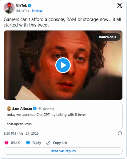 还记得OpenAI首席执行官Sam Altman在2022年宣布ChatGPT-3问世的推文吗?这条旧推文近日成为游戏社群的“集火”目标。许多玩家认为,正是这波AI浪潮导致了游戏主机与电脑硬件价格飞涨,尤其是近期PS5再度宣布涨价,更点燃了玩家怒火。
